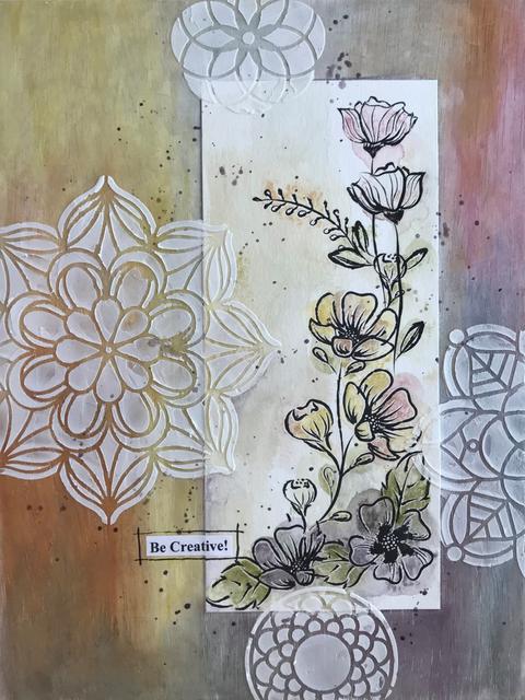 Description: Immerse yourself in the vintage romantic glow of earth tones and hand-drawn florals with a touch of texture as you transform a 9”x12” wood panel into a mixed media piece reminiscent of embroidered linen! Create sheer layers of color with the newest addition to the Faber-Castell Design Memory Craft Gelatos® family – TRANSLUCENTS. Add a hand-drawn touch with the Mixed Media Transfers and build up texture with a set of our Mandala stencils.